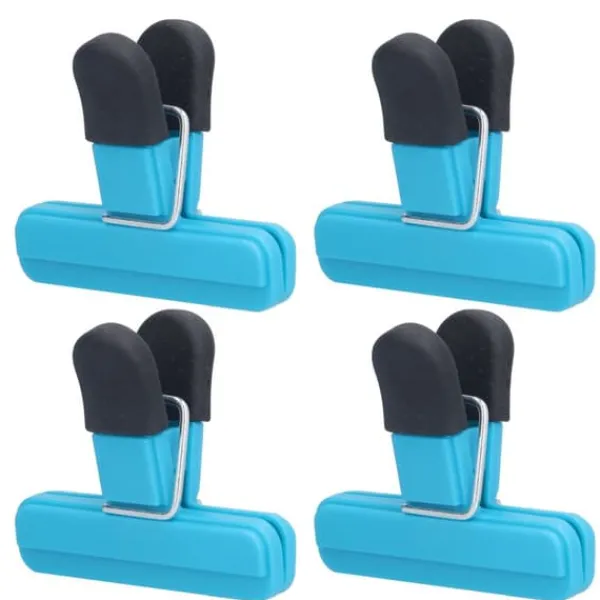 2、Alle clips har bløde skridsikre håndtag og ribbede tænder. Chucken har en skridsikker effekt og et behageligt greb. Det vil ikke beskadige madposen og hjælpe med at holde på maden.