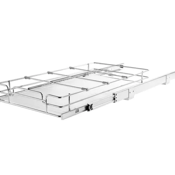 Takket være et kuglelejesystem i industriel kvalitet glider denne trådskuffe glat under vægten af tunge køkkenredskaber (som køkkenmaskiner, gryder, pander og andet køkkenudstyr) uden ubehagelige lyde.