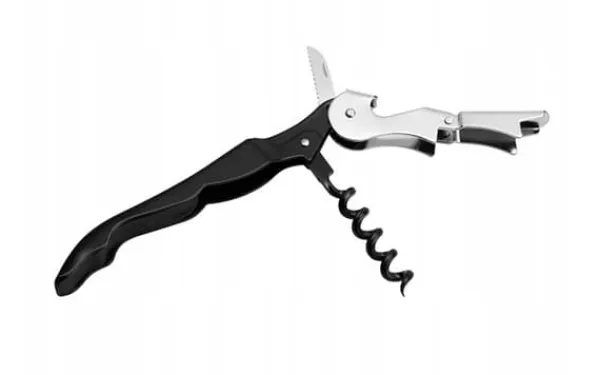 ✅ Produktet er praktisk og yder pålidelig støtte i den daglige madlavning. Den består af en proptrækker, en flaskeåbner og en kniv, der gør det muligt hurtigt og nemt at fjerne folien fra flasken. Vær forsigtig under brug for at undgå snitsår.