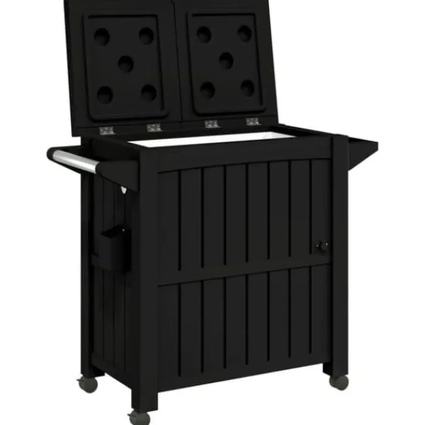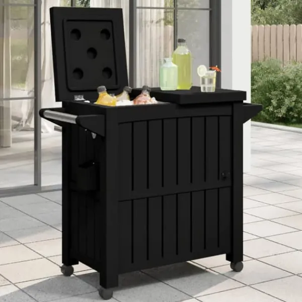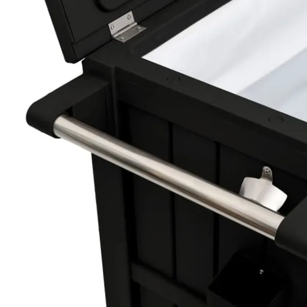 Denne serveringsvogn med hjul har en 80 l isspand, og den er ideel til udendørs sammenkomster. Den kan bruges som et tilberedningsområde eller et opbevaringsbord.