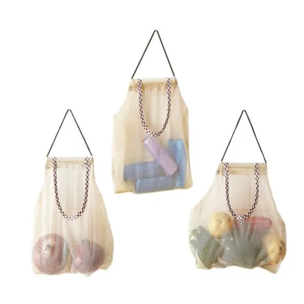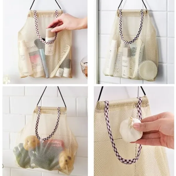 Velkommen til vores butik! Dette sæt med tre grøntsagsopbevaringsposer har en stor åbning for nem adgang og et tredimensionelt gitterdesign for generøs kapacitet. Den ensartede placering sikrer robusthed og brugervenlig håndtering. De er lavet af polyesternet med en hul konstruktion og giver fremragende ventilation, der holder frugt og grønt friske. Ideel til opbevaring af kartofler, tomater, løg, ingefær, grønne peberfrugter og meget mere. Disse alsidige poser kan hænges hvor som helst i dit hjem for at spare plads og organisere grøntsager effektivt, og de kan også bruges til at binde affaldsposer. De er fremstillet af slidstærkt polyester og PVC og måler 29 x 26 cm. Tilfredshed: Vores kunder er vores højeste prioritet. Hvis du oplever produktproblemer efter modtagelse af varerne, såsom skader eller forkert mængde varer, bedes du kontakte sælgeren med det samme. Vi gør vores bedste for at give dig tilfredsstillende eftersalgsservice.