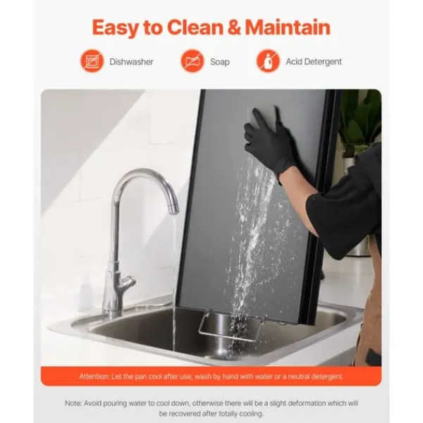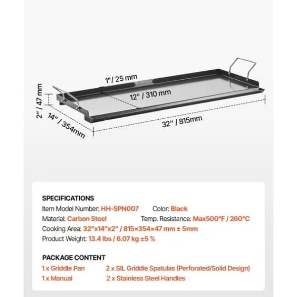 - Kvalitets kulstofstål: Denne stegeplade er lavet af holdbart kulstofstål, som kan klare temperaturer op til 500℉, hvilket gør det muligt at lave mad ved høj varme.
