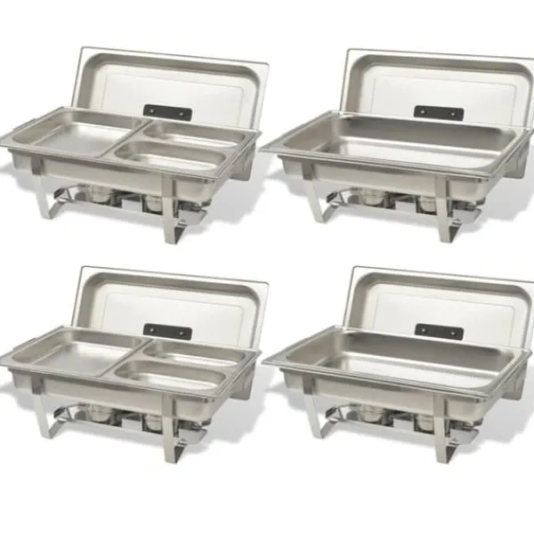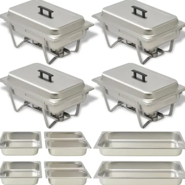 Dette sæt bestående af 4 fyrfade er meget praktisk og ideelt til at holde mad lun eller varm i længere tid. Det er ideelt til brug i catering, restauranter, hoteller eller til fester eller familiesammenkomster derhjemme.