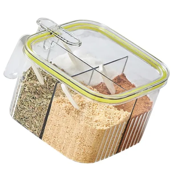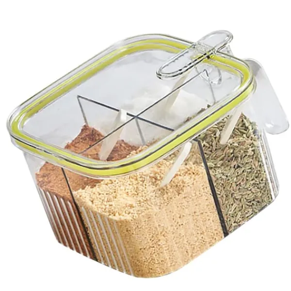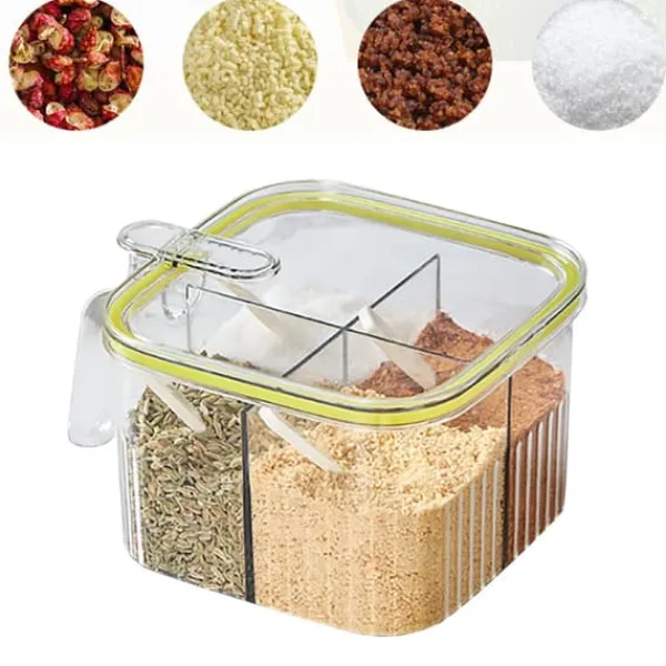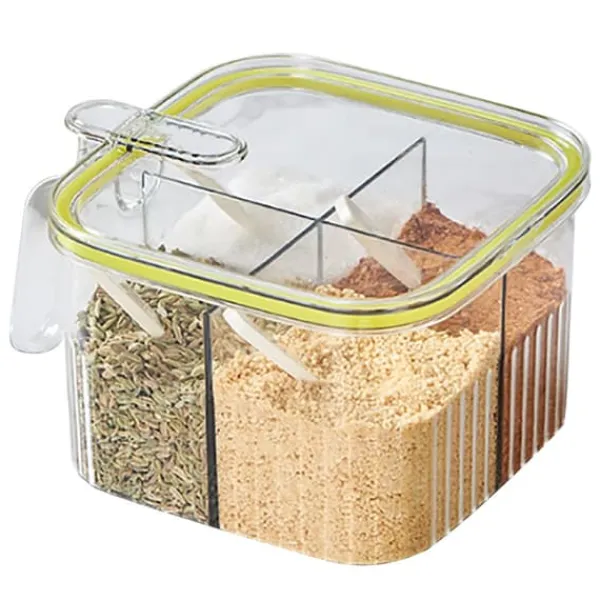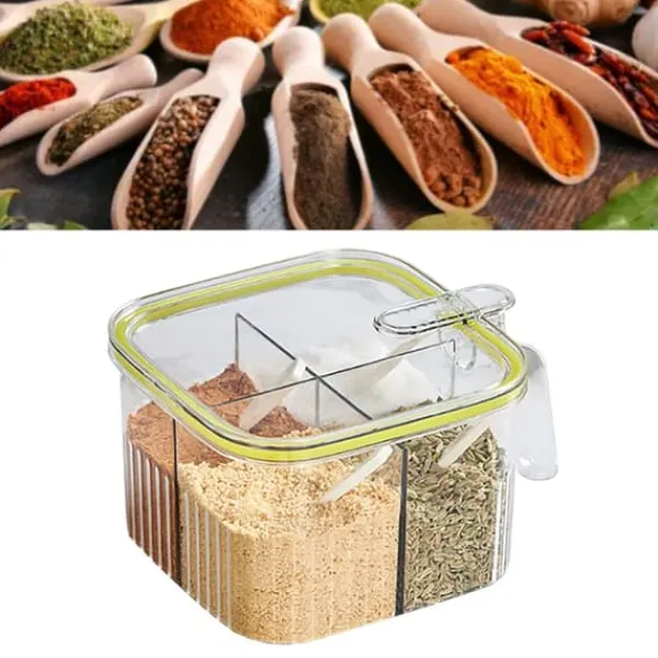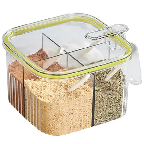 Velkommen til vores butik!1, 4 gitter: Denne krydderibeholder har 4 rum til nem opbevaring uden at rode dit køkken, kan klassificeres til opbevaring af salt, peber, sukker osv. 2、Præcis måling: Leveres med 4 skeer til 4 krydderier, sikrer nøjagtig portionering, forhindrer spild og overdreven brug af krydderier, hensynsfuld og pålidelig. 3, Enhåndsbetjening: Tryk med den ene hånd for at åbne, giver nem adgang, hvilket gør krydderierne problemfrit. Forsegling af gummiring for at sikre friskheden af krydderier. 4、 Flere anvendelige steder: Letvægts og i lille størrelse, let at opbevare og bære, velegnet til hjemmekøkkener, restauranter, skolekantiner osv. 5、Plastmateriale: Krydderipotte med låg er lavet af plastmateriale, sikker og miljøvenlig, fast og stabil, slagfast og robust, ikke let at bryde, holdbar til brug.Varetype: Krydderiboksmateriale: Plastvægt: 243 g / 8,6 oz (ca.) 1 x Krydderiæske 4 x ske100 % tilfredshed: Vores kunder er vores topprioritet. Hvis du finder produktproblemer efter modtagelse af varen, såsom skader og forkert mængde af varer, bedes du straks kontakte sælgeren. Vi gør vores bedste for at give dig en tilfredsstillende eftersalgsservice.