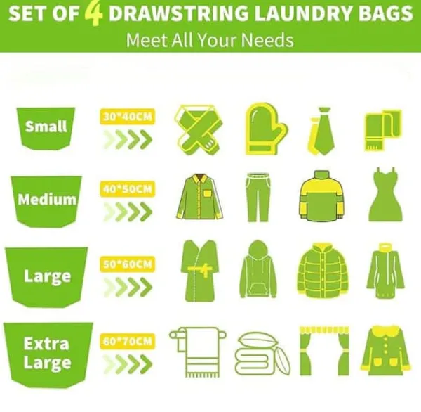 4-pak vasketøjsposer – alsidige maskinvaskeposer i forskellige størrelser
