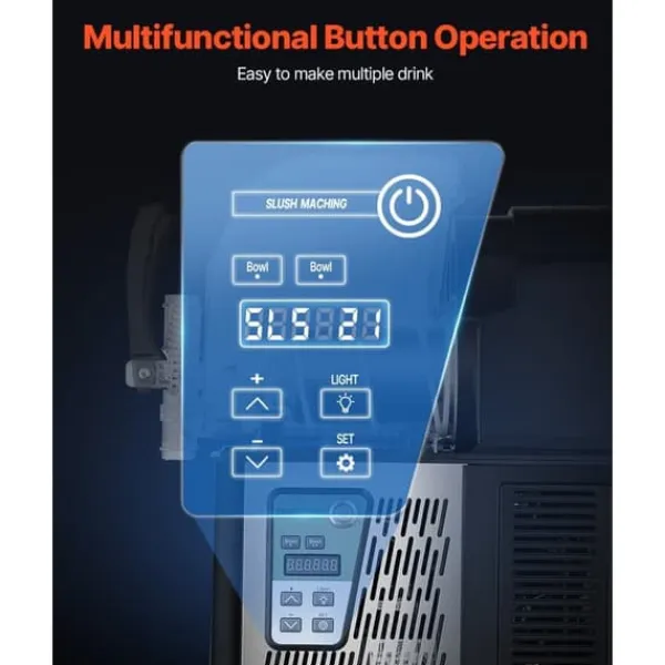 – Justerbar Temperatur: Denne opgraderede slushy-maskine tilbyder 15 justerbare niveauer, hvilket giver dig kontrol over blødhed og hårdhed for din foretrukne drikke. Ideel til juice, slushy, margaritas, og iskaffe.