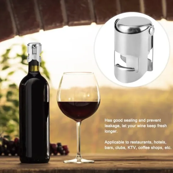 Velkommen til vores butik! Denne vinprop af høj kvalitet er designet til at give fremragende forsegling for at forhindre lækage og holde din vin frisk i længere tid. Den er fremstillet af holdbart rustfrit stål og fødevaregodkendt silikone, hvilket sikrer miljømæssig sundhed og langvarig brug. Denne prop er ideel til restauranter, hoteller, barer, klubber, KTV, caféer og meget mere, er nem at bruge og passer til de fleste vin- og champagneflasker. Med et moderne, moderigtigt og smukt design er den en fin gave til champagneelskere. Produktet er 100% helt nyt, lavet af rustfrit stål og silikone, leveres i sølvfarve og måler ca. 3,8×5,5 cm i diameter og højde og vejer ca. 300 g. Du vil modtage 5 vinpropper. Tilfredshed: Vores kunder er vores højeste prioritet. Hvis du oplever problemer med produktet efter modtagelse af varerne, såsom skader og forkert mængde varer, bedes du kontakte sælgeren med det samme. Vi gør vores bedste for at give dig tilfredsstillende eftersalgsservice.