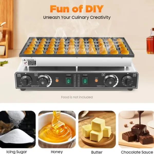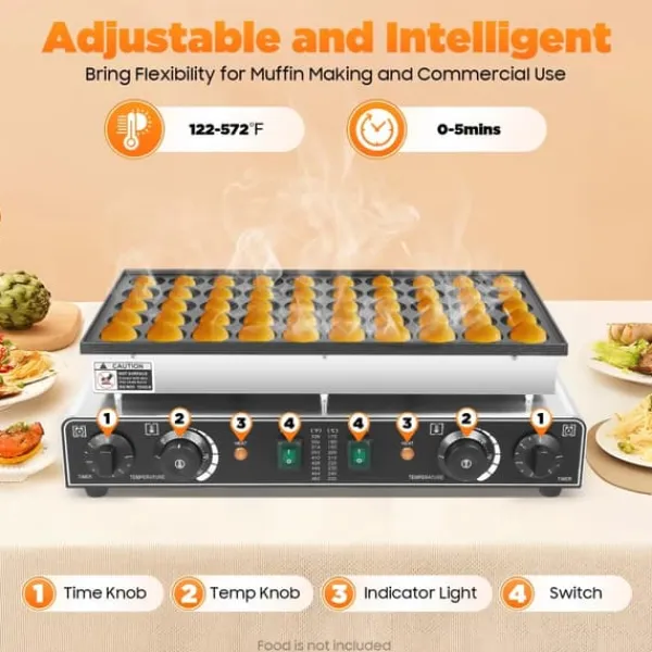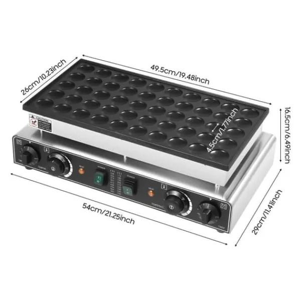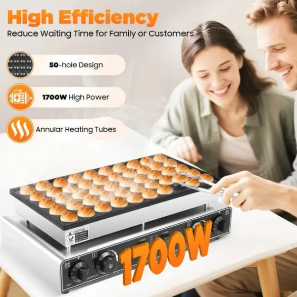 Stor kapacitetMed 50 huller på ca. 4,5 cm i diameter bager du mange portioner på én gang – ideel til familie, café og events.