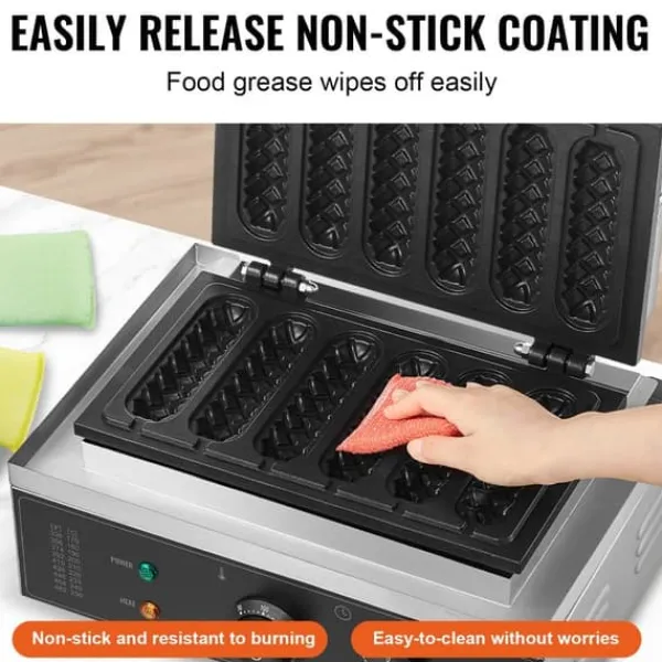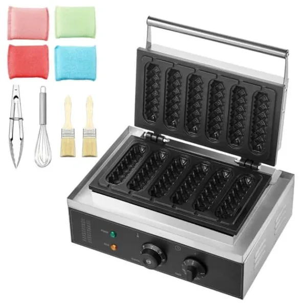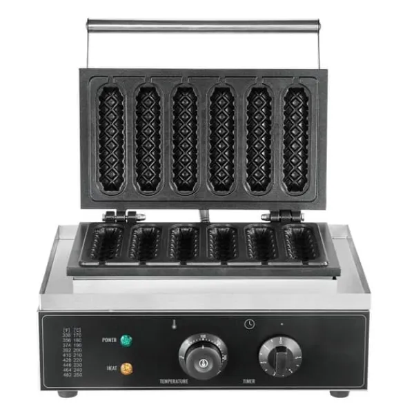 Hurtig og nem fremstilling af lækre vafler er mulig med vores 1500W højtydende hotdog vaffelmaskine. Denne maskine kan producere 6 vafler på få minutter, med en sprød yderside og en luftig inderside, hvilket sparer tid og giver en bekvem morgenmad.