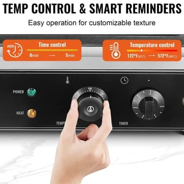 Vores kommercielle vaffelpindemaskine har en temperaturkontrolknap, der giver dig mulighed for at tilpasse temperaturen efter dine præferencer. Skab personlige vafler, enten sprøde eller luftige, og nyd dem nøjagtigt som ønsket.