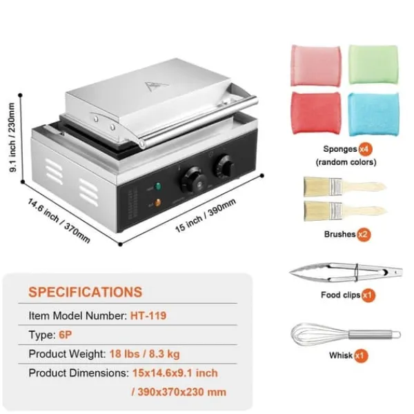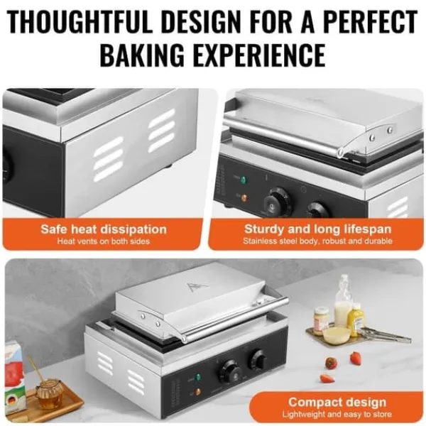 Fremstillet af rustfrit stål for stabilitet, vores hotdog vaffeljern har en fleksibel åbning og lukning. Med flere tilbehør inkluderet til at hjælpe med bagningen, får du et produkt, der er designet med omtanke.