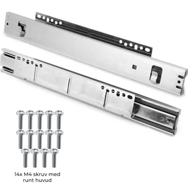 Kommer med skenor och monteringstillbehör till varje korg