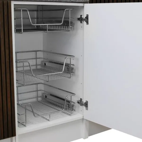 Gör det lätt att komma åt längst inne i skåpen med utragbara trådkorgar. Vår förvaringslösning är utformad för storkök så den är tillräckligt stark och hållbar för en livlig hemmiljö. De stängs dessutom mjukt och tyst vilket gör köksupplevelsen ännu mer njutbar