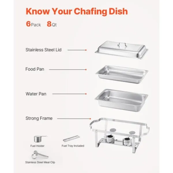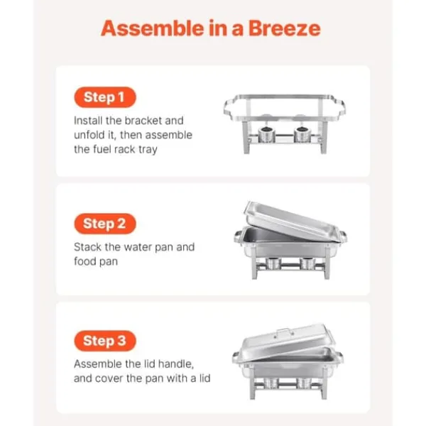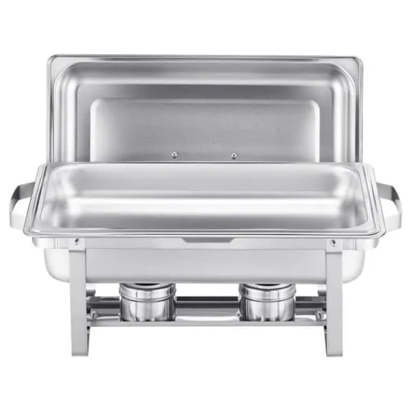 Dette chafing dish-buffetsæt har et letmonteret, foldbart design, der sparer værdifuld opbevaringsplads. Dens kompakte form sikrer, at den let kan opbevares uden at optage meget plads.