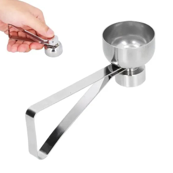 Velkommen til vores butik! Denne æggeåbner i rustfrit stål af høj kvalitet er stærk og holdbar, hvilket gør den sikker og ideel til at tilberede blødkogte, hårdkogte eller rå æg. Den er utrolig nem at bruge: Du skal blot justere koppen oven på ægget, trække hammeren op og slippe den for at fjerne æggeskallen rent uden at beskidte dine hænder. Skærekanten er lidt bredere end en standard teske, der passer til de fleste ægstørrelser, og har en glat, ikke-skarp inderkant for ekstra sikkerhed. Den er fremstillet af rustfrit stål, er hurtig at rengøre med varmt vand eller i opvaskemaskine, og den modstår deformation og rust, selv ved langvarig brug. Dette praktiske værktøj er perfekt til hjemmet eller restauranten og kan prale af et moderne, let og bærbart design, der er nemt at opbevare. Det er den perfekte ledsager til morgenmad eller ethvert måltid. Produktets dimensioner er ca. 9,5 x 3,6 x 3,2 cm (3,7 x 1,4 x 1,3 tommer), med en vægt på ca. 57 g (2,0 oz), og den leveres i en elegant sølvfarve. Dit køb inkluderer 1 æggeåbner. Tilfredshed: Vores kunder er vores højeste prioritet. Hvis du oplever problemer med produktet efter at have modtaget varerne, såsom skader eller forkert mængde varer, bedes du straks kontakte sælgeren. Vi gør vores bedste for at give dig tilfredsstillende eftersalgsservice.