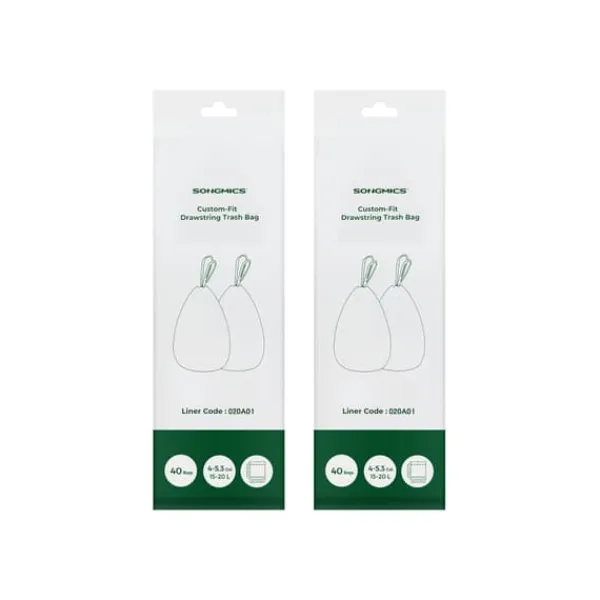 Hoogenboezemwonen affaldsposer med snøre, affaldsposer til 15-20 liters affaldsbeholdere, affaldsposer til køkkenspande, kode 020A01, 2 ruller, i alt 80 stk., hvid – materiale: 15 μm tyk polyethylenplast. Mål pr. pose: 42 x 60 cm (B x H). Kapacitet pr. pose: 15-20 liter. Totalvægt: 0,7 kg. Maksimal statisk belastning pr. pose: 12 kg. Maksimal statisk belastning af snøren: 10 kg.