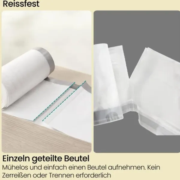 Bemærk venligst, at disse affaldssække ikke er beregnet til opbevaring af fødevarer. Træk forsigtigt poserne ud af skraldespanden for at undgå skader, især hvis de sidder fast.