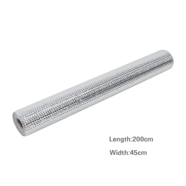 Stand: 100% helt ny og høj kvalitet Materiale: Aluminiumsfilm stanniol Farve: Sølv Størrelse: Ca. 45*200 cm Vægt: Ca. 80g Pakken indeholder:
