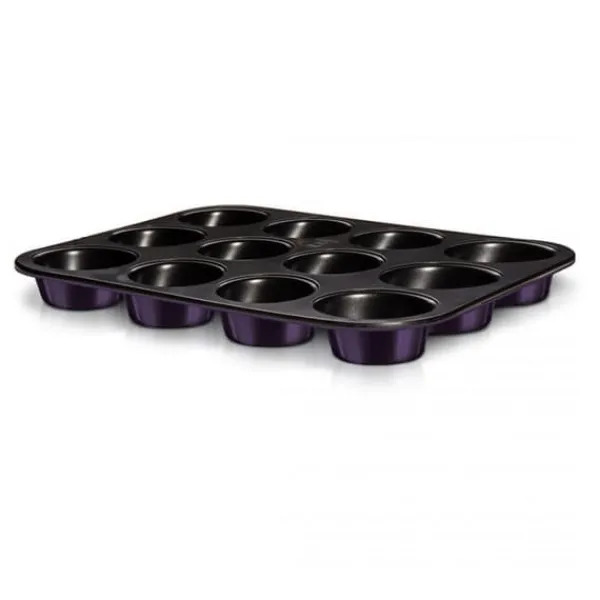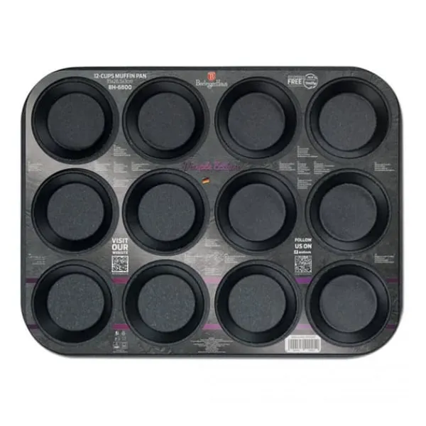 BAGEFORM MED NON-STIC OVERTRÆK – 12 MUFFINS fra PURPLE ECLIPSE COLLECTION line Rektangulær bageform til 12 muffins 35 x 26,5 x 3 cm fra BERLINGER HAUS. Fremstillet af stålplade, dækket med non-stick belægning. EGENSKABER: Non-stick belægning indeholder ikke skadelig PFOA (perfluoroktansyre) og er fri for cadmium og blyforbindelser Sikker ved temperaturer: -20 til +220 °C Farve: lilla Lilla Dimensioner: 35 x 26,5 x 3 cm Den anvendte belægning. er ekstrem hård, den ridser ikke let, giver fremragende beskyttelse mod rust og frem for alt letter bageprocessen.
