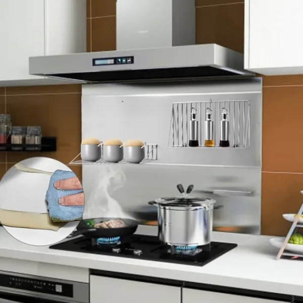 ENKEL RENGØRING – Det glatte, holdbare rustfrie stålmateriale sikrer en nem rengøring af madlavningssprøjt. Du kan hurtigt tørre olien af bagpladen, hvilket er meget lettere end at rengøre din væg.