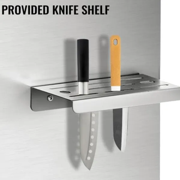 INDEHOLDENDE KNIVHOLDER – Udover de to hylder tilbyder vores komfurplade også en knivholder til opbevaring af dine knive. Flere huller gør det muligt at holde knive i forskellige størrelser.