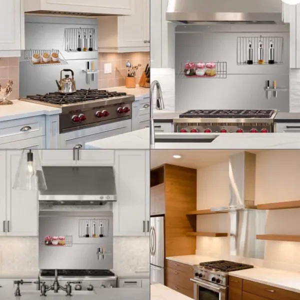 LET MONTERING – Den har en enkel struktur, der gør det muligt at montere den hurtigt på din køkkenvæg med 10 forborrede huller. Efter installationen sidder den fast og falder ikke ned. Krydderihylden og knivholderen kan også nemt monteres på denne komfurplade med de medfølgende skruer.