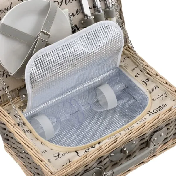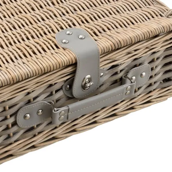 [casa.pro]® Piknik kurv med inkluderet køleboks, tallerkener og bestik – 38x25x16cm – sæt for 2 personer – grå