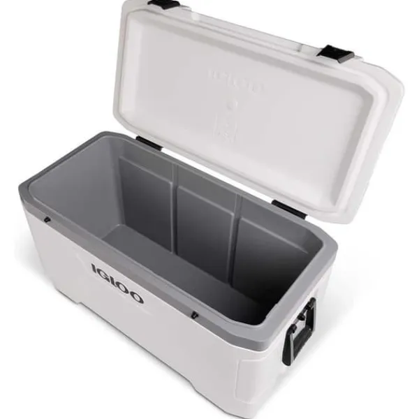 IGLOO COOLERS Latitude Marine Ultra 100 er en robust og holdbar bærbar køleboks, der er designet specielt til camping og udendørs eventyr. Med en generøs kapacitet på 94 liter kan denne køleboks nemt rumme al din mad og drikkevarer til lange campingture eller gruppearrangementer.Marine Ultra 100 har en stiv konstruktion, der er lavet af højkvalitetsmaterialer, der kan modstå barske forhold og sikre langvarig ydeevne. Den hvide farve giver ikke kun et elegant og stilfuldt udseende, men reflekterer også sollys, hvilket minimerer varmeabsorptionen og hjælper med til at holde indholdet køligere i længere tid.Køleboksen er udstyret med en række funktioner, der forbedrer din campingoplevelse. Cool Riser Technology løfter køleboksen fra varme overflader, hvilket giver forbedret køleeffekt. Låget har en UV-hæmmer, der beskytter mod solskader, mens de forstærkede svingende håndtag gør det nemt at bære køleboksen til og fra din campingplads.Marine Ultra 100 har også en integreret fiskemåler på låget, så du kan måle dagens fangst bekvemt. Den gevindte drænprop gør det muligt at dræne vandet uden besvær, hvilket sikrer en ren og tør indvendig del. Desuden er køleboksen designet til at rumme Igloos genanvendelige ispakker eller iserstatninger for forbedret køleeffektivitet.Uanset om du planlægger en ugelang campingtur, en weekendtur eller blot nyder udendørsaktiviteter, er IGLOO COOLERS Latitude Marine Ultra 100 en pålidelig og rummelig køleboks, der holder din mad og drikkevarer forfriskende kolde i alle udendørs omgivelser.