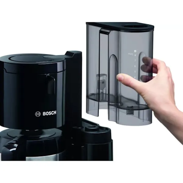 Kraftfuldt varmeelement: ideel bryggetemperatur for en fyldig aroma. Med termokande for længere kaffenydelseVolumeAutomatic for optimal brug, selv til små portionerAftagelig vandtank: hurtigt og nemt, direkte fra hanenIntegreret afkalkningssystem: forenkler afkalkning – for lang levetid på apparatet og fremragende smagTermokande i rustfrit stål med låg, åbning med én hånd (1,1 liter)Maksimalt strømforbrug: 1100 wattDrejelig og aftagelig filterholder (størrelse 1 x 4)DrypstopAutomatisk slukning efter tilberedning (Auto-sluk)Nem opbevaring: hurtig og nem ledningsoprulningFarve: sort/rustfrit stål