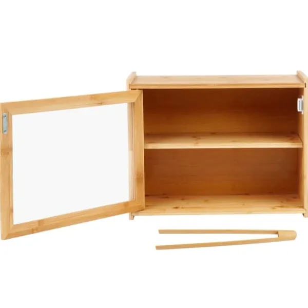 Lavet af bambustræ – Brødkasse lavet af bambustræ. Frontglasset er lavet af gennemsigtig plastik. Tangen er lavet af bambustræ.