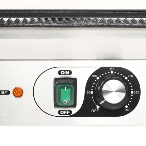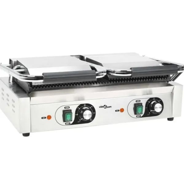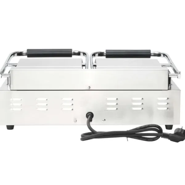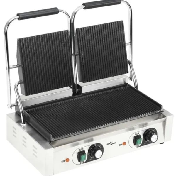 Vores dobbelt rillede paninigrill er det perfekte valg til hurtigt at grille paninier, sandwicher, bøffer, kylling, grøntsager mv.
