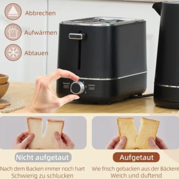 Sikkerhed først: Automatisk slukning med indikatorlampe og tørkogningsbeskyttelse på elkedlen, samt sikkerhedsafbrydelse mod overophedning på brødristeren. BPA-fri materialer sikrer sikker brug.