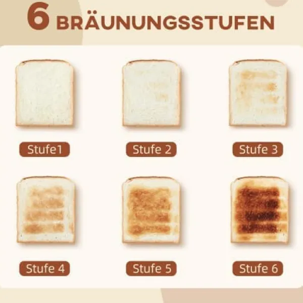 Alsidig brødrister: Brødristeren har funktioner til både opvarmning og optøning, seks risteniveauer og en høj løftefunktion, der gør det nemt at riste selv små skiver brød direkte fra fryseren.