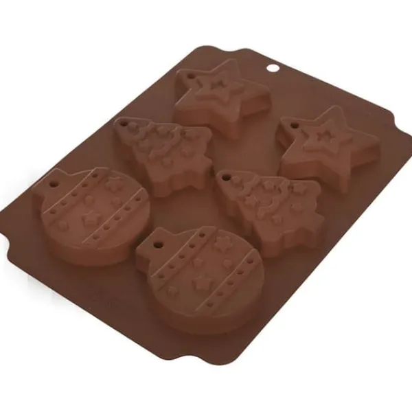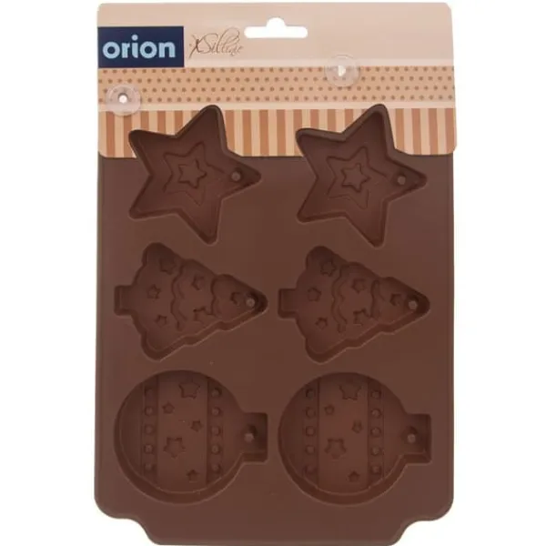 Silikone juleform til at lave 6 småkager eller peberkager. Perfekt til jul til at lave slik i form af en kugle, et juletræ eller en stjerne. Formen absorberer ikke lugt eller smag. Dejen klistrer ikke og strækker sig perfekt. Der bruges ikke fedtstof eller mel til bagning. Silikoneformen er let, fleksibel, fylder kun lidt og er modstandsdygtig over for temperaturændringer. Den leder varme meget godt. Originalt produkt fra det tjekkiske mærke Orion. Fremstillet i henhold til europæiske standarder.
