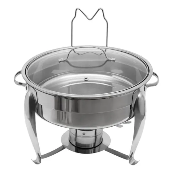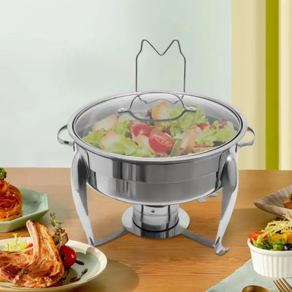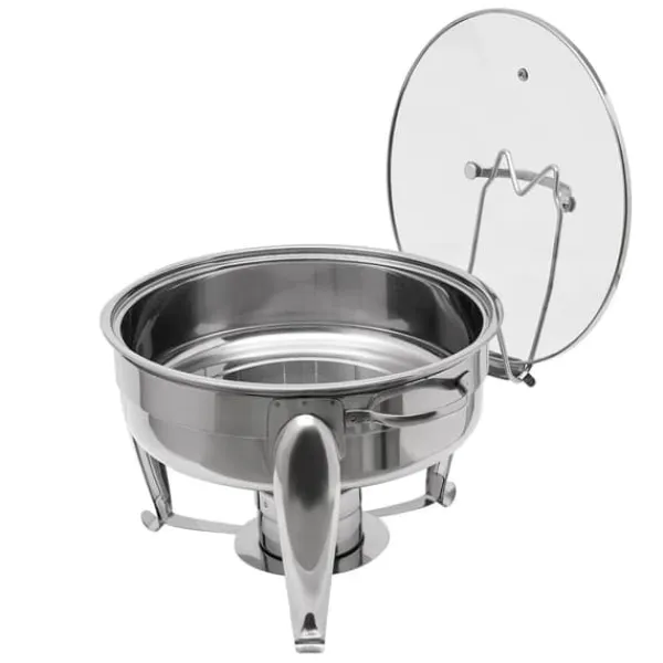 Rund chafing dish med alkoholbrænder – varm servering med eleganceDenne runde serveringsvarmer holder maden jævnt varm og giver en indbydende stemning ved bordet. Kombinationen af rustfrit stål og klart glas sikrer holdbarhed, overblik og flot præsentation.