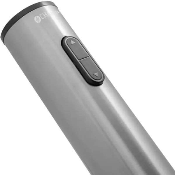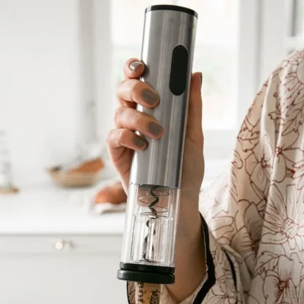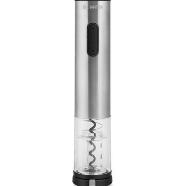 Med Champions elektriske vinåbner i rustfrit stål kan du hurtigt og nemt åbne din vinflaske – uden risiko for kork i vinen. Med et enkelt tryk på en knap trækkes proppen op, og den omvendte funktion fjerner proppen fra åbneren. En folieskærer medfølger for nem brug, der drives af 4 AA-batterier.
