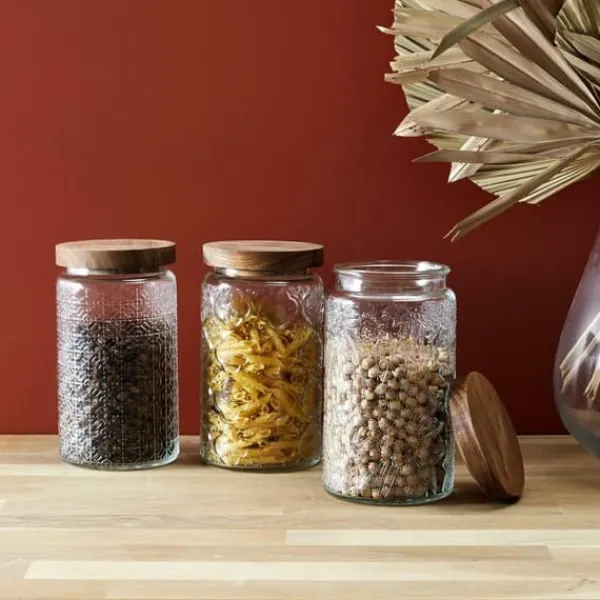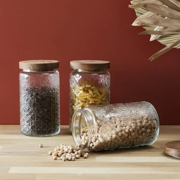 Cisele 1-liters krukken med akacielåg erden perfekte kombination af elegance og funktionalitet, der vil tilføje stil til ethvert køkken. Den gennemsigtige krukke er lavet af højkvalitets glas og akacietrægiver dig mulighed for nemt at overvåge indholdetog sikrer friskhed takket være sin silikoneforsegling.