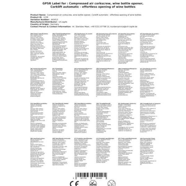 Corklift automatisk – den berømte proptrækker er bevist I mere end 30 år, og så længe denne proptrækker. Den hule nål af den automatiske Corklift indsættes i proppen. Ved efterfølgende tryk på en knap proppen af Co2 stiger – Pressure uskadt og lidt ud af flasken. Dens let og nem måde at Uncorking vinflasker er værdsat af mange ældre vinelskere i årtier. Hulnålene er for nylig blevet forsynet med PTFE, en non-stick belægning. Således kan den hule nål lettere gennembore proppen og træk den ud igen. Ved betjening af automatiske Corklift bruges en udskiftelig gas kapsel, kan være uncorked med omkring 50 flasker. Du har brug for CO2 kapsler 8 gr.