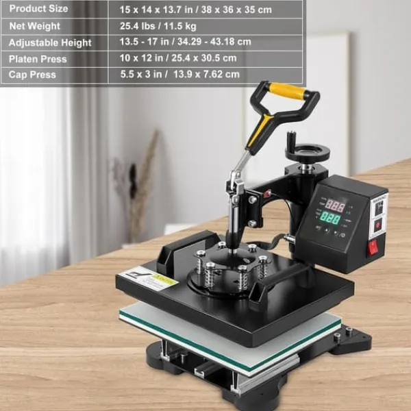 Flade & buede presser: Sammen med en buet presse til kasketter tilbyder varmpressen med 10 x 12 tommer / 25,4 x 30,5 cm stor sublimationspresse rigelig designplads til grundlæggende varmepressteknikker. Desuden sikrer den tykke plade bedre varmeopbevaring og en god varmekonsistens.