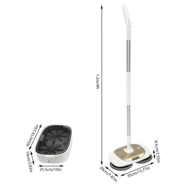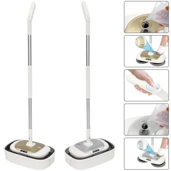 Denne gule, trådløse spinmoppe leverer effektiv gulvrengøring på fliser, træ, laminat, marmor og PVC. Den indbyggede 400 ml tank fordeler vand jævnt for en ren, stribefri finish uden hyppige påfyldninger.