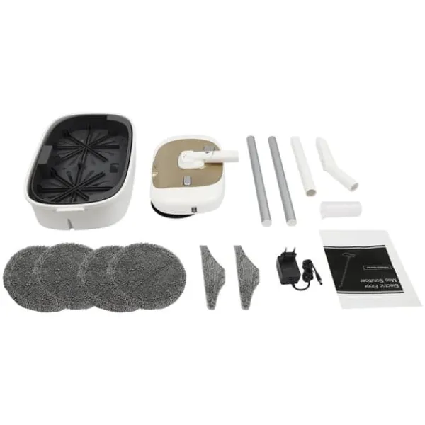 Det fleksible moppehoved drejer 180° sideværts og 90° op/ned, så du let kommer under sofaer og ind i snævre hjørner. Med ca. 60 dB kan du gøre rent uden at forstyrre.