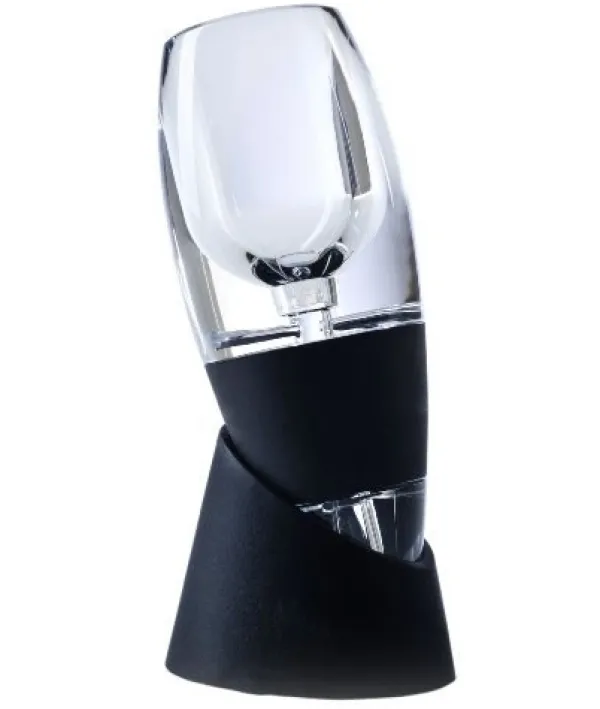 Dekanteringsproppen gør så vinen luftes hurtigt, og aromaer frigøres, mens vinen løber gennem tudstykket. På grund af den smarte udformning af dekanteringsproppen øges vinflyden og resulterer i et lavt tryk, der suger luft ind fra siderne, mens du hælder og dermed lufter vinen. På denne måde mindskes syren, og vinens bitterhed dæmpes, så du får en rigere smagsoplevelse af din vin.