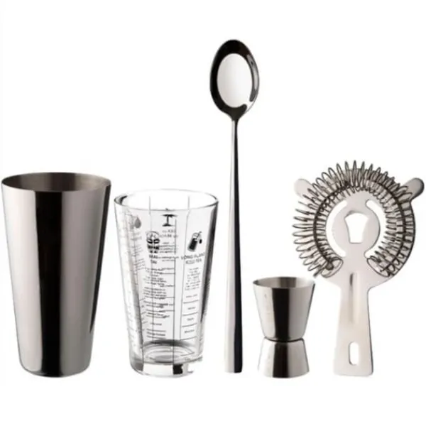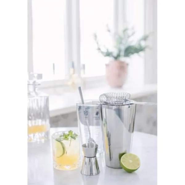 The ultimate bar set for those who want to impress their guests with a really good drink. The Dolan bar set consists of everything you need: a Boston shaker, a drink measure, a drink strainer and a spoon.
