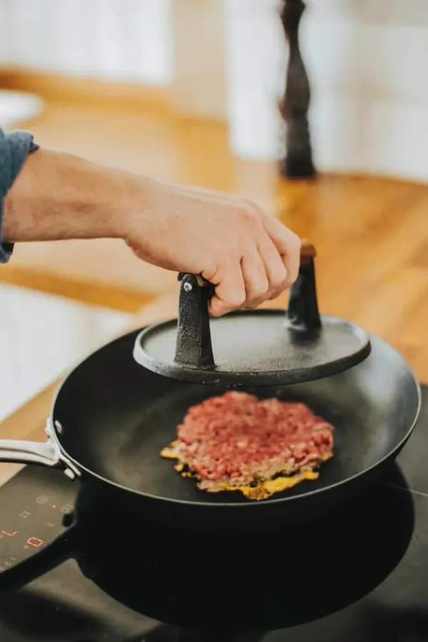 Hamburgerpress i gjutjärn som hjälper till att göra det bästa hamburgaren enligt många kockar.