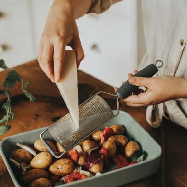Zoya Zest Jern 2 mm er det perfekte køkkenredskab til hurtigt og nemt at rive citrusskal til bagning, madlavning eller dekoration. Den fine riveoverflade giver perfekt zest uden at fjerne den bitre hinde.