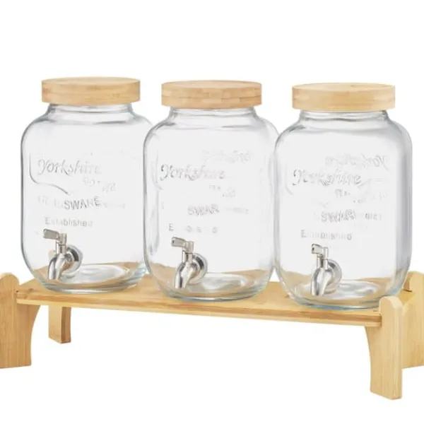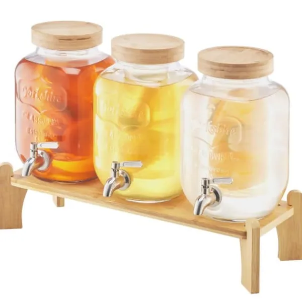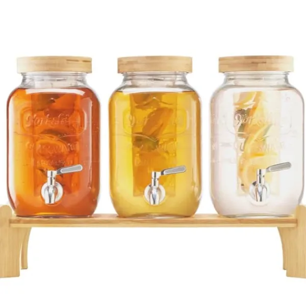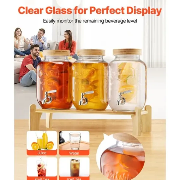 Nem at bruge: Designet med den brede åbning gør juicedispenseren nem at genopfylde, træstativet giver stabil støtte og nem dispensering, og låget forhindrer støv eller snavs i at trænge ind, hvilket sikrer, at dine juicer forbliver rene og lækre.