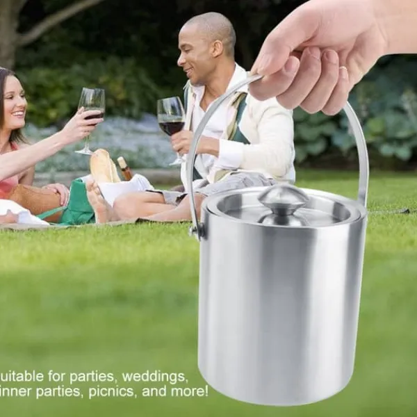 Den isolerede dobbeltvæggede konstruktion og det øverste låg hjælper med at holde isen kølig og kold i længere perioder. Den glatte overflade gør den nemmere at rengøre. Denne isspand er velegnet til forskellige lejligheder såsom fester, bryllupper, middagsselskaber, picnics og meget mere!