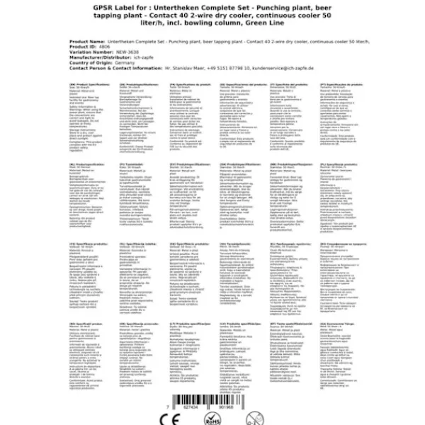 Fadølsanlæg - kontakt 40 2-sidet tør køler, kontinuerlig køler 50 liter/h, inkl. Dispensersøjle, Green Line, KEG 2:Type D, KEG:NC adapter Online