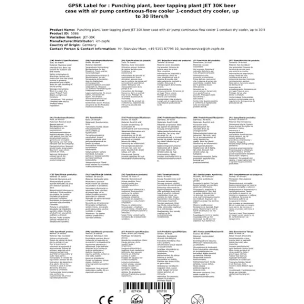 Fadølsanlæg, Øldispenser JET 30K: Til en øl med det perfekte skum og temperatur Perfekt afkølet øl uden CO2 JET 30K-dispenseren er den ideelle løsning til enhver, der er på udkig efter en tørkøleanordning, der kan holde øllen lækkert afkølet helt uden CO2. Takket være den indbyggede flowkøler og tørkøleteknologi vil din øl altid have den perfekte temperatur og skum. Ud over at skabe den perfekte øl oplever du ingen opsprøjtning, hvilket giver dig en optimal øloplevelse. Effektiv og hurtig •JET 30K kan dispensere op til 30 liter øl i timen og sørger for en hurtig og nem betjening. •Den kontinuerlige køler- og tørkøleteknologi sikrer, at dispenseren er klar til brug på et øjeblik. •Dispensingssystemet bruger op til 45 % mindre energi end andre modeller, hvilket sparer dig for penge på din elregning. Mobil og holdbar •Takket være luftpumpen kan dispenseren bruges mobilt, så du kan tage den med dig på alle dine eventyr og til alle dine fester. •JET 30K er lavet af rustfrit stål af høj kvalitet, der sikrer, at anlægget kan holde i mange år. Nem at rengøre og vedligeholde •Dispenseringssystemet er nemt at rengøre og kan hurtigt gøres klar til brug igen. •Den indbyggede termostat sørger for, at øllet altid holdes på den rigtige temperatur, så du kan nyde en lækker og frisk øl, hver gang du hælder op. •Med en kapacitet på 30 liter i timen er anlægget også ideelt til mindre begivenheder og fester. •JET 30K kan betjenes uden brug af CO2, og det gør det lettere for dig at invitere dine venner til en ølfest, uden at skulle bekymre dig om små flasker eller store tanke. •Fadølsanlægget er designet for at give dig en problemfri oplevelse, uanset om du bruger det i et hjem, i en bar eller på picnic. JET 30K-dispenseringsanlægget vil give dig den bedste øloplevelse og er din trofaste ledsager til enhver lejlighed. Blandt kunderne, der allerede har købt JET 30K, er der meget positiv feedback, da den giver dem muligheden for at nyde øllet på en helt ny måde, og give dem mulighed for altid at have øl ved hånden.