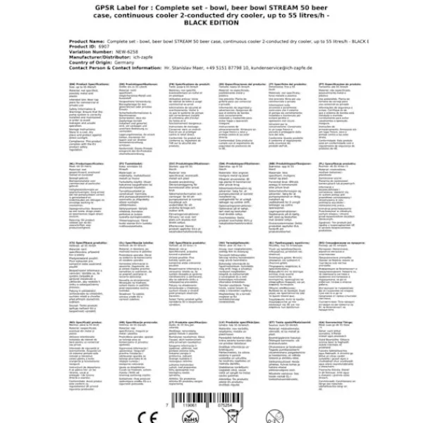 Under-counter komplet sæt – fadølsanlæg STREAM 50 ølkasse, gennemstrømningskøler, 2-linjers tørkøler, op til 55 liter / t – BLACK EDITIONBestår af:•Fadølsanlæg STREAM 50 ølkasse, gennemstrømningskøler, 2-linjers tørkøler, op til 55 liter / t – BLACK EDITION•Forbindelser: John Guest•1x dispenser / pumpetårn, matbørstet, 2-sidet•2 x ølslange 7mm komplet, klar, 3,0 m•2 x rengøringsadapter 30 mm•1 x trykreduktion 2-sidet CO2 til øl dispenser 3bar•1 x CO2-flaske, 2,0 kg•2 x CO2-slange komplet, 1,5 m•2 x ølslange John Guest – 3/8 og 5/8 skruestik 2,00 m – helt færdig!•Kuldioxidnøgle fanget•2 x dispenseringshoved, dit valg: uden, flad, kombi, kurv, KöpiØlkøler STREAM 50 -nem at bruge – TOP i ydeevneDu kan trykke på i et par enkle trin:Udpak dispenserenForbind trykreducereren til CO2-flasken med kuldioxidnøglen, og stram denForbind CO2-slangen fra trykreduktionsventilen til dispenserhovedetTilslut ølslangen til dispenseringshovedet, sæt den i dispenserenog fastgør denIndstil hanetrykket på trykreduktionsorganetTilslut dispenseren til stikkontaktenIndstil trykket, og nyd en kold ølDu kan finde alle komponenter i det komplette sæt eller som tilbehør i vores butikSTREAM 50 – top i klassen med 2 linjedispenseringssystemerSTREAM 50 ølkøler er i kategorien “dispenseringssystemer op til 55 l / t”, en af de bedste med hensyn til omkostninger, ydeevne, kvalitetsforhold.Nem rengøring af STREAM 50-systemetMed det følgende rengøringssæt kan du rengøre STREAM 50dispenseren let og bekvemt efter brug:rengøringssæt lilleNemt rengøringssæt(anbefales)Stort rengøringssætSTREAM 50 flow køler – tekniske dataDen ædle STREAM 50 Tørkøler med en vægt på kun 32 kg er udstyret med en 7 mm linie.Mål:B / D / H / 210х405х410 (inkl. Drypbakke)Spænding:220V, 50 Hz, 267W, 1,16AKompressor:1/6 PSManagement:2 x øltyperHus:Metal, pulveriseret, rustfastHøj kvalitet på håndværk og emballeringgennemstrømningskøler STREAM 50 2 linjer – effektivitet, ydeevne, nydelseTermoblokken i STREAM 50-øldispenseren har en høj energikapacitet,der kan således tappes på en perfekt kølet øl efter 2-4 minutter. Hvis termostaten er indstillet til max. )akkumulerer en stor mængde energi, som gør det muligt at servere flere kølede øl efter hinanden.STREAM 50-dispenserens køleteknologi er omkring 45%mere effektiv end den elektriske et strømforbrug.Ølen køles ned til vandhanen.Kølebøjlerne er lavet af rustfrit stål og er derfor stabile og holdbareDe anvendte materialer lever op til de højeste hygiejnestandarder og muliggør en lang levetid for køleren.STREAM 50 2lt – og den kolde øl strømmer fra 2 vandhanerMed sin stærke kølekapacitet og perfekte dimensioner er STREAM 50 dispenseren en af de førende 2-linjers bord- / underbordskøler på markedet.Kølekapacitet fra 80 til 90 glas (0,5 liter) af fremragende kølet øl pr. time,Den kraftfulde STREAM 50 kompressor sikrer minimalt energiforbrug og en fremragende kølet øl uden skumningHvis termostaten er indstillet til maks.,vil termoblokken (efter ca. 10 minutter) akkumulere en stor mængdeenergi og dermed servere mere kølede øl efter hinanden.Køleteknologien til STREAM 50-dispenseren er omkring45% mere effektiv end det elektriske strømforbrug.Ølen afkøles til vandhanen.Kølesløjferne er lavet af rustfrit stål og er derfor stabile og holdbare.De anvendte materialer opfylder de højeste hygiejnestandarder og gør detmuligt for køleren at have en lang levetid. dispenser STREAM 50 2-vejs øldispenser 55 liter / h, ølkasse,flowkøler , tørkøler3 min udpakning … 2 min opsætning … 1 min forbindelse = ubegrænset nydelse.En kold, klar, friskappet øl – du fortjener det!STREAM 50 2lt ølkøler er til professionel køling og servering af fremragende køletøl i hjemmemiljøet, til havefester og til mellemstor kommerciel brug.Kontrolområdefra +2 til +10 graderOutput:55 l / t ved 10 ° C TDKøleteknologier 45% mereeffektivKlar til brugpå bare 2-4 minutter